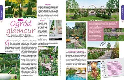 - Współczesne ogrody cz.10 Ogród glamour – Styl glamour zachwyca elegancją, szykiem i wyrafinowaniem także w ogrodach. Glamour to połączenie elegancji, luksusu i wyrafinowania, które przejawiają się w harmonijnym układzie przestrzeni i starannie dobranych detalach. To bogactwo form i materiałów, a także atmosfera wytworności, która sprawia, że ogród staje się miejscem wyjątkowym. Podpowiadamy, jak go stworzyć, nie jest to trudne.